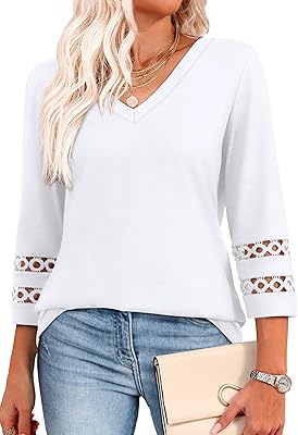 XIEERDUO 34 Length Sleeve Womens Tops Dressy Casual Blouses for Women 2025 Trendy V Neck T Shirts Summer Clothes